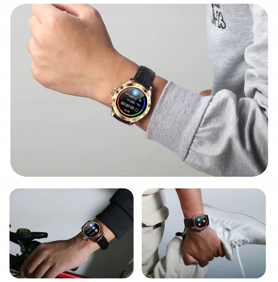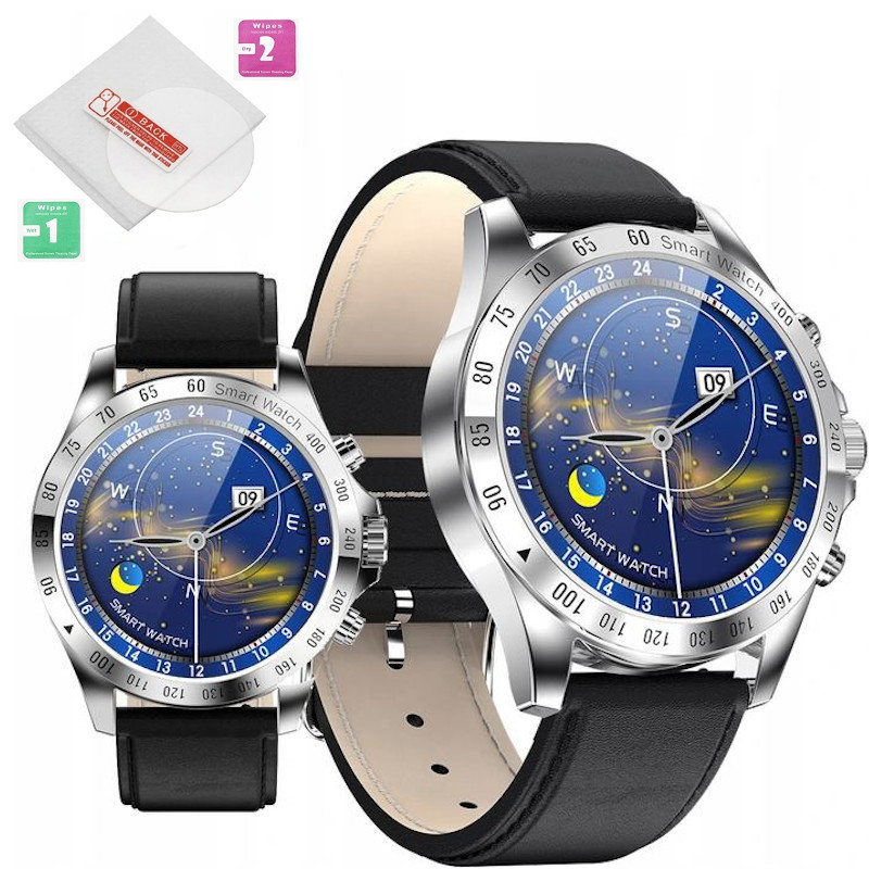 Smartwatch łączy w sobie nowoczesny wygląd i dużą liczbę funkcji. Produkt wysokiej jakości: koperta ze stali nierdzewnej oraz skórzany pasek. Dostępny w 3 wariantach kolorystycznych.