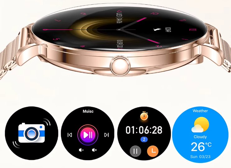 Poznaj elegancki i nowoczesny Smartwatch V85 dla kobiet – stworzony z myślą o aktywnym stylu życia, zdrowiu i modnym wyglądzie. Duży, kolorowy ekran AMOLED 1.43", funkcja rozmów Bluetooth, przycisk obrotowy oraz wodoszczelność sprawiają, że to idealny towarzysz każdego dnia – zarówno na siłowni, w pracy, jak i podczas wieczornego wyjścia.