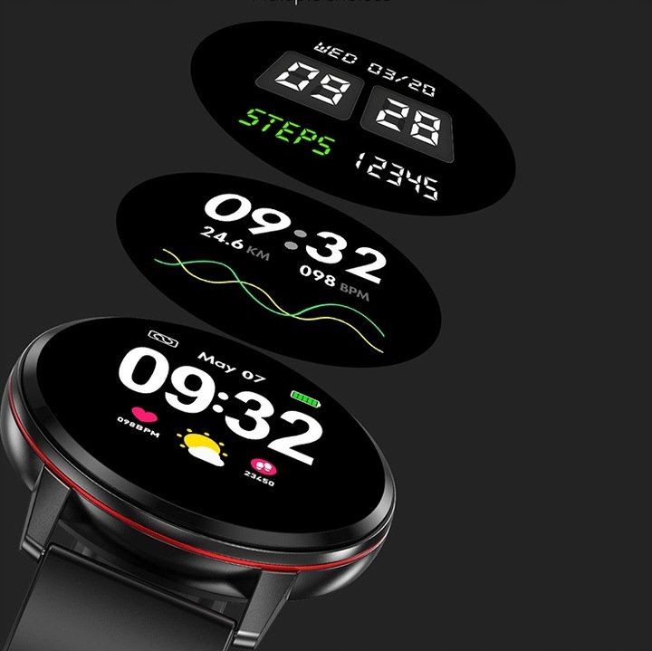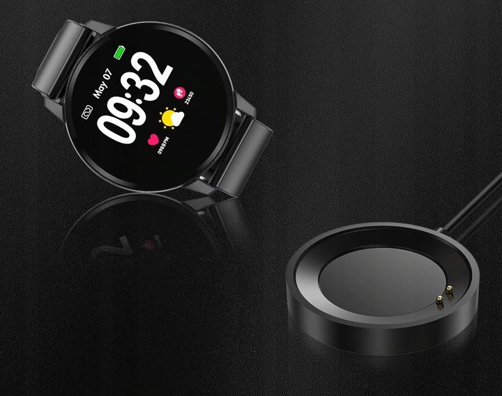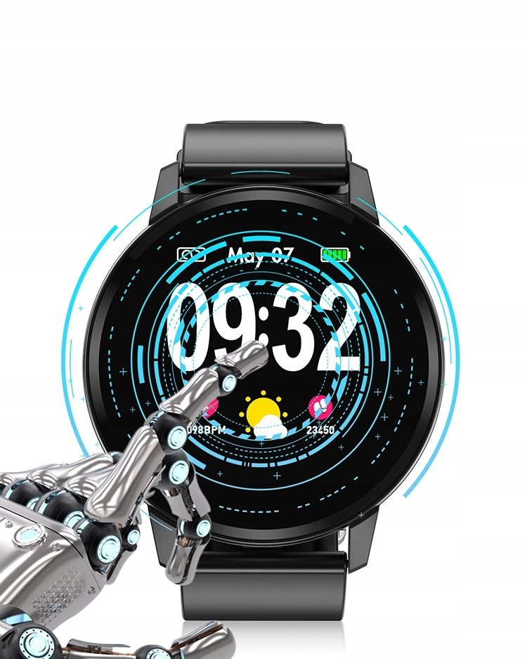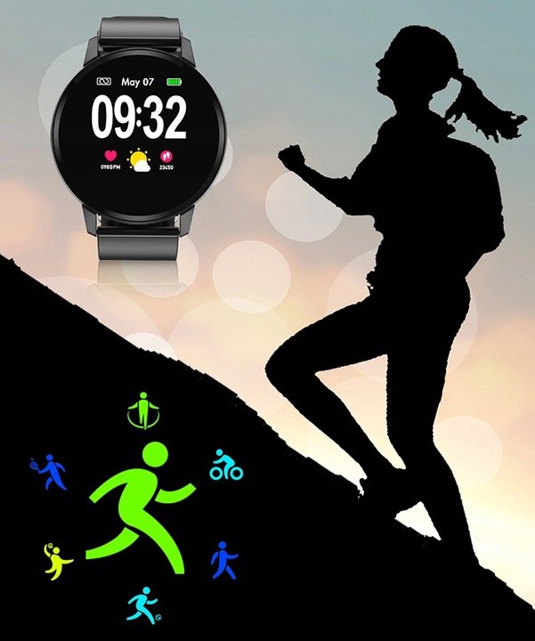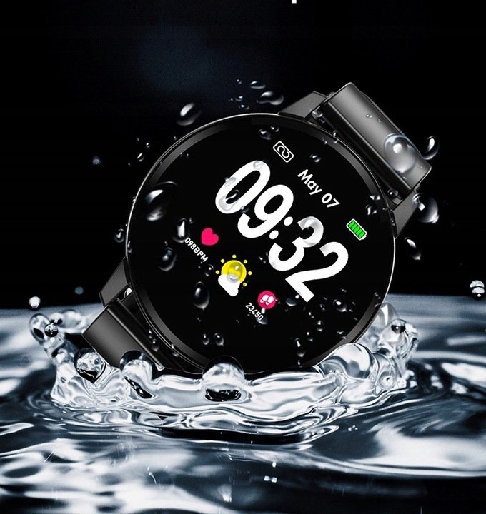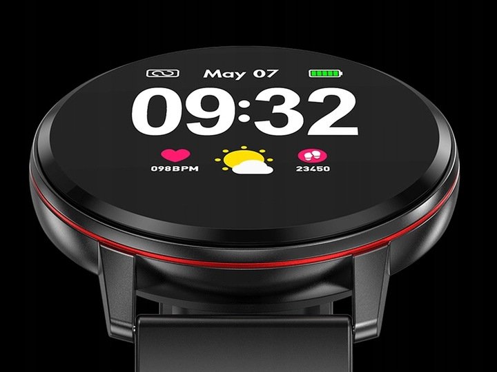 - pulsometr - mierzy tętno za pomocą czujnika wbudowanego od wewnętrznej części koperty