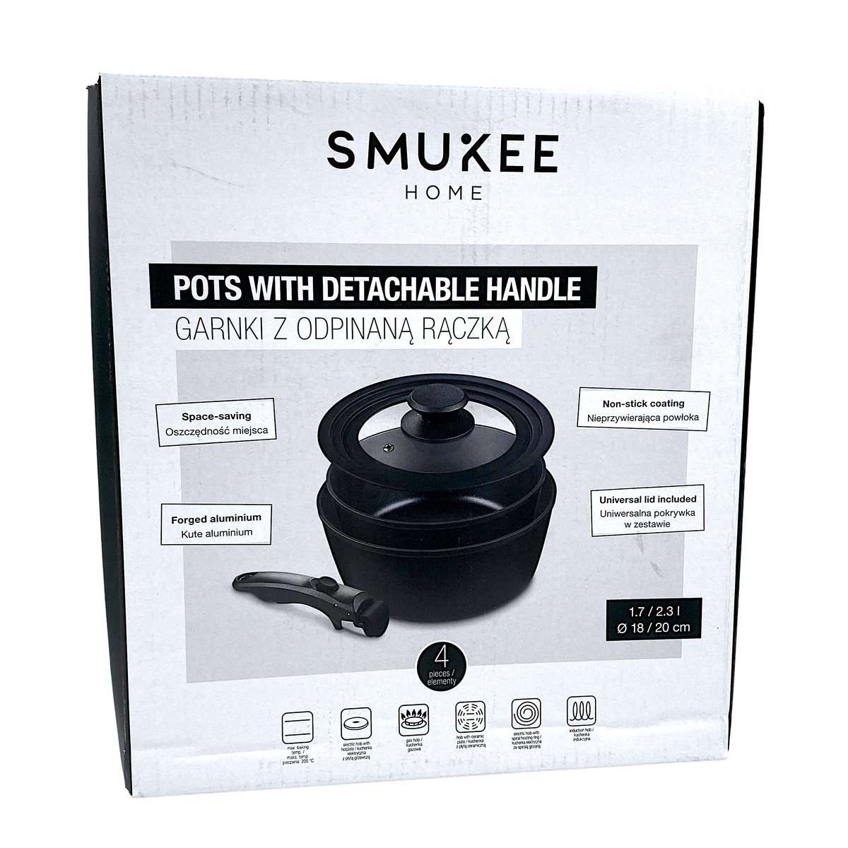 Smukee – Zestaw garnków z odpinaną rączką, 4 elementy, czarne