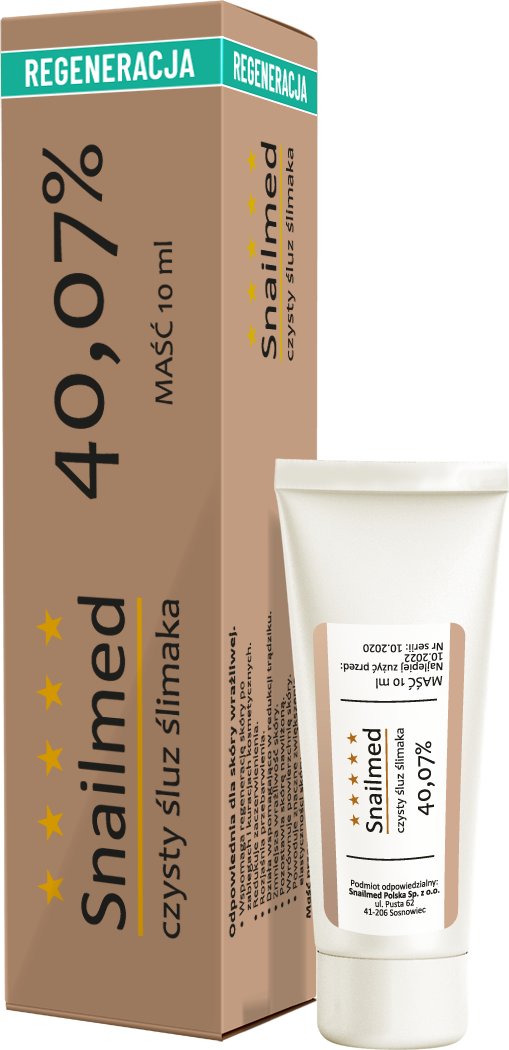 Śluz ślimaka jest naturalną „bombą” regeneracyjną dla skóry. Dominująca w składzie maści zawartość maturalnego czystego śluzu ślimaka (40,07% całej formuły) oddzielonego od wody, świadczy o najwyższej jakości produktu, gwarantuje szerokie spektrum działania oraz wysoką skuteczność.