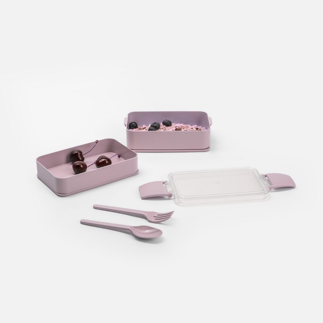 Lunchbox z Dwoma Pojemnikami – 1L, Różowy + Sztućce w Zestawie