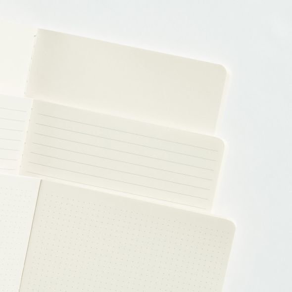 Okładka wewnętrzna z unikalną grafiką. Każdy z notesów posiada inny rodzaj stron: czyste, w linie, kropkowane.