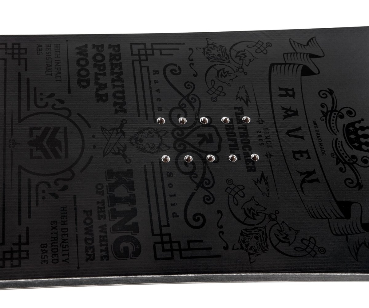 Raven wyszedł na przeciw początkującym riderom, tworząc deskę, która rozwala miejskie poręcze, niszczy parki i stoki, czyli prawdziwego twardziela wśród desek allmountain/freestylowych. Miękki topolowy rdzeń powoduje, że deska ta wybacza błędy początkujących chcących nauczyć się jazdy na krawędziach, czy też wszystkich innych osób, które rozpoczynają swoją przygodę w parku i pajpie.