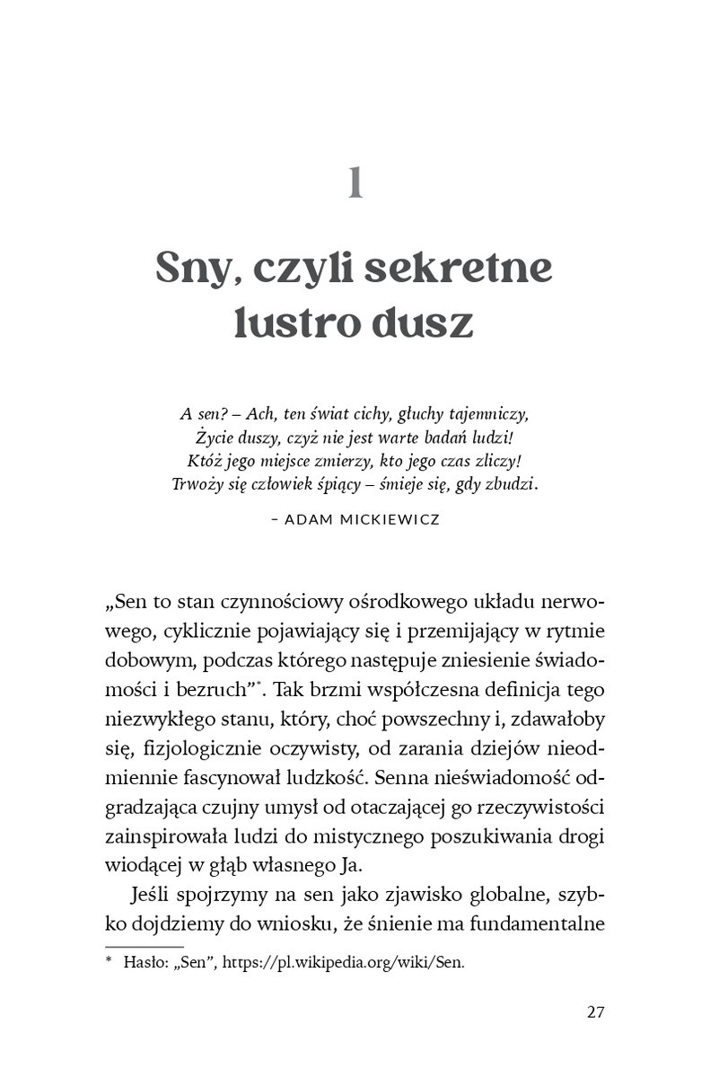 Ta książka to nie tylko wciągająca lektura, ale też praktyczny przewodnik pokazujący krok po kroku, jak z codziennych – i czasem zaskakujących – obrazów sennych wydobyć wartościowe wskazówki. Przypadnie do gustu każdemu, kto chce lepiej poznać siebie, pogłębić intuicję i nauczyć się języka, w którym przemawia do nas nasza własna nocna wyobraźnia.