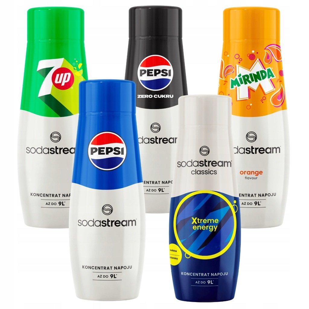 ⭐ Zestaw 5 koncentratów 7UP, Pepsi, Pepsi Max, Mirinda, Xtreme. Oryginalne koncentraty SodaStream. ⭐ Lepsza alternatywa dla Twojego zdrowia i środowiska Przynieś ulubione smaki do swojego domu z ...