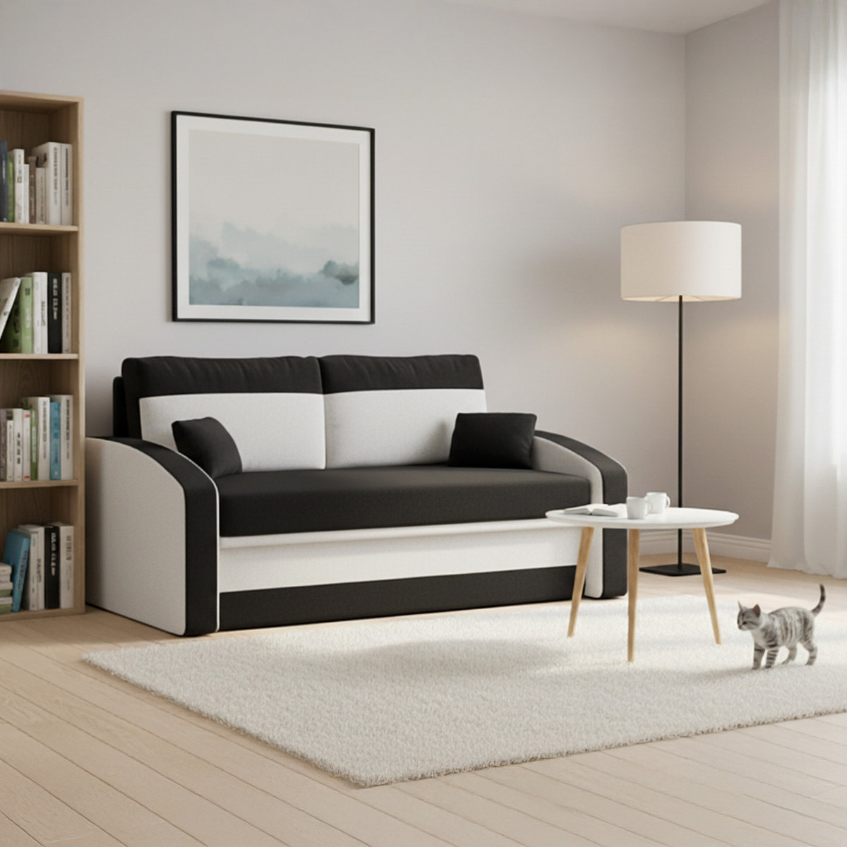 | Nazwa: | Sofa Hewlet z Funkcją Spania Łóżko Rozkładana, Czarny-Biały |