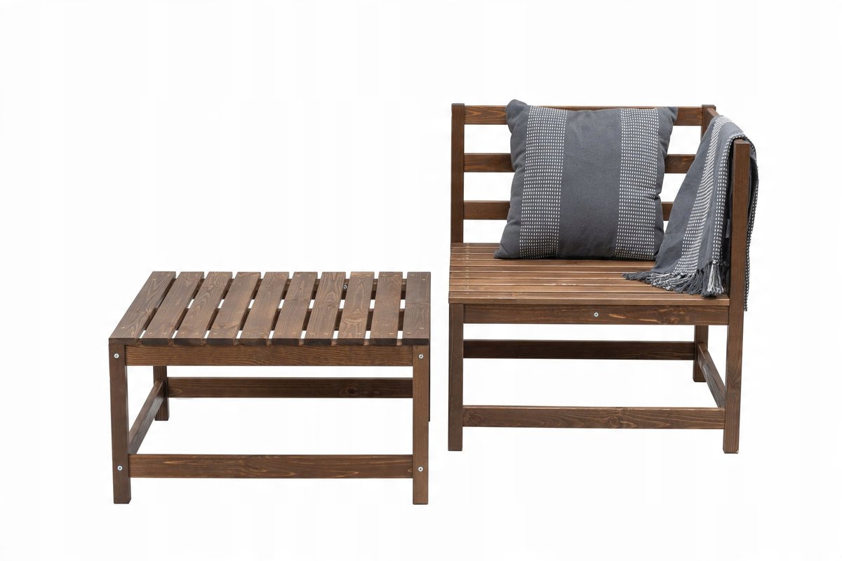 Narożna sofa ogrodowa z litego drewna sosnowego w brązowym odcieniu to doskonały wybór dla osób ceniących wysoką jakość i klasyczny design. Solidna konstrukcja gwarantuje trwałość na lata, a elegancki brązowy kolor drewna dodaje stylu i uroku każdemu ogrodowi, tarasowi czy dużemu balkonowi. Ten narożnik to idealne miejsce do wypoczynku na świeżym powietrzu, organizowania spotkań z rodziną i przyjaciółmi oraz czerpania przyjemności z relaksu w otoczeniu natury.