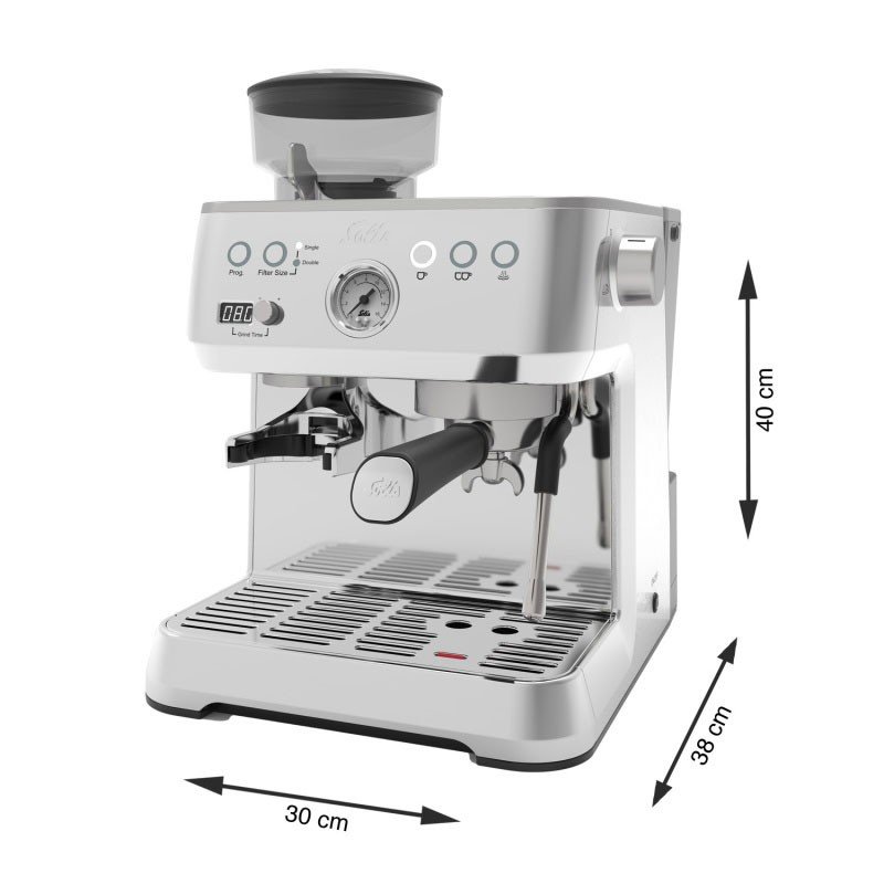 Czy jesteś prawdziwym miłośnikiem kawy? Czy jesteś osobą, która zawsze szuka najlepszej kawy w okolicy, gdy jest w obcym kraju? W takim razie Grind & Infuse Perfetta jest idealnym urządzeniem dla Ciebie! Dzięki temu ekspresowi do kawy możesz przygotować najpyszniejsze wariacje kawy, tak jak robi to prawdziwy barista. Filtry na 1 i 2 filiżanki, a także stalowy tamper i dzbanek na mleko są dołączone do urządzenia w pudełku, dzięki czemu możesz od razu zacząć.Ten półautomatyczny ekspres do kawy jest cichy w użyciu i pozwala cieszyć się pyszną filiżanką kawy lub herbaty według własnego uznania. Ten ekspres nagrzewa się w ciągu 45 sekund, co pozwala wypić pierwszą filiżankę w ciągu zaledwie jednej minuty. Manometr pokazuje ciśnienie, pod jakim przygotowywane jest espresso. Idealne ciśnienie ekstrakcji podczas gotowania wynosi od 8 do 12 barów.Ekspres można skonfigurować, jeśli chcesz dostosować i jak najlepiej wykorzystać ziarna kawy. Wybierasz ilość kawy na filiżankę i temperaturę parzenia. Urządzenie zapamiętuje ustawienia, dopóki nie zostaną zmienione lub anulowane. Aby oszczędzać energię, Solis Grind & Infuse Perfetta przełącza się w tryb czuwania po 10 minutach i można go dodatkowo dostosować do 30 lub nawet 120 minut. Po 20 minutach bezczynności urządzenie wyłącza się automatycznie.