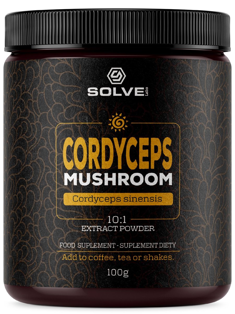 SOLVE - cordyceps, większa wydolność fizyczna, 100g Składniki: Ekstrakt 10:1 z owocników maczużnika chińskiego 1 porcja dostarcza: 500 mg ekstraktu z owocników maczużnika ...