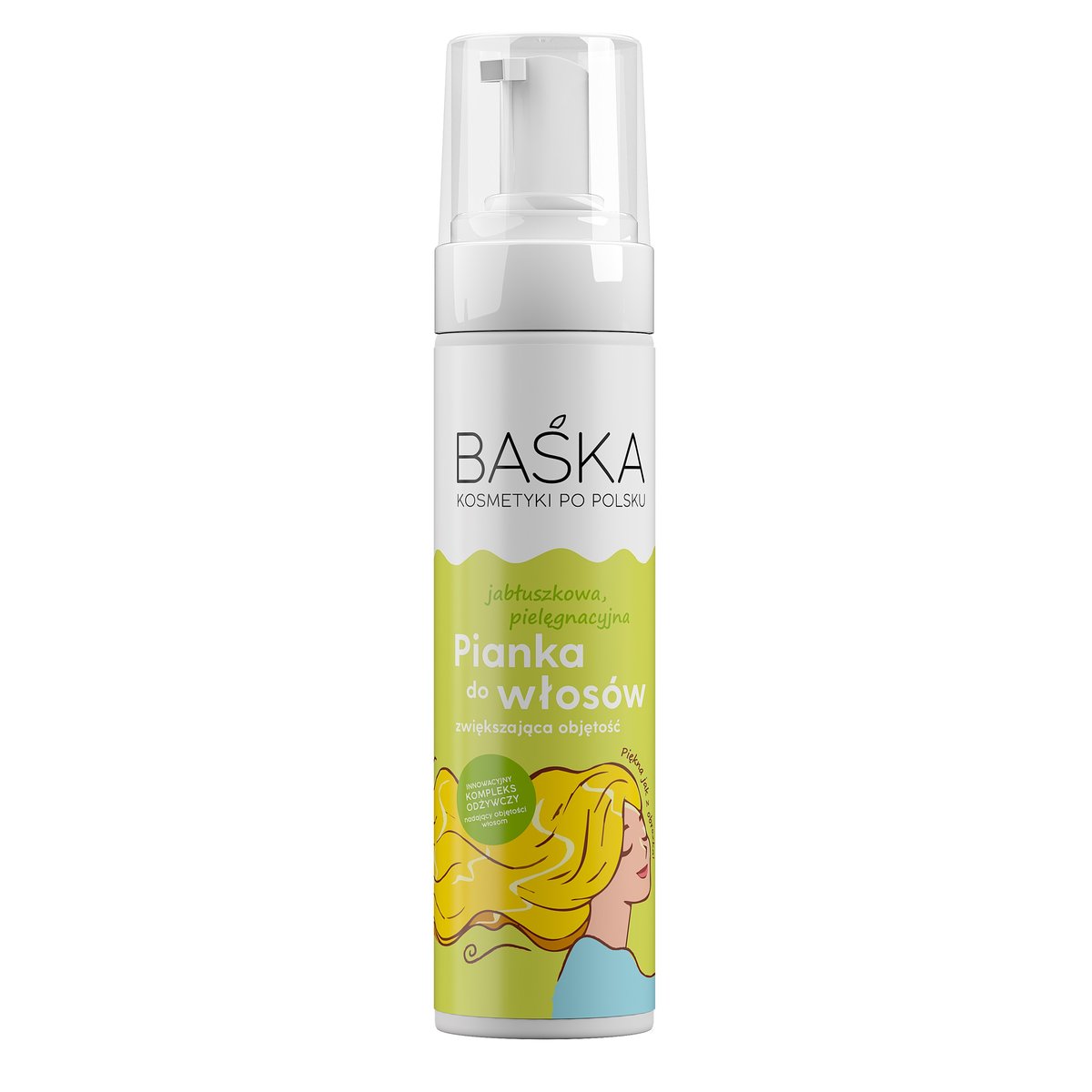 Baśka jabłuszkowa pielęgnująca Pianka do włosów zwiększająca objętość 200 ml Pianka, która zapewnia efekt uniesienia włosów u nasady, dodając im tym samym objętości.