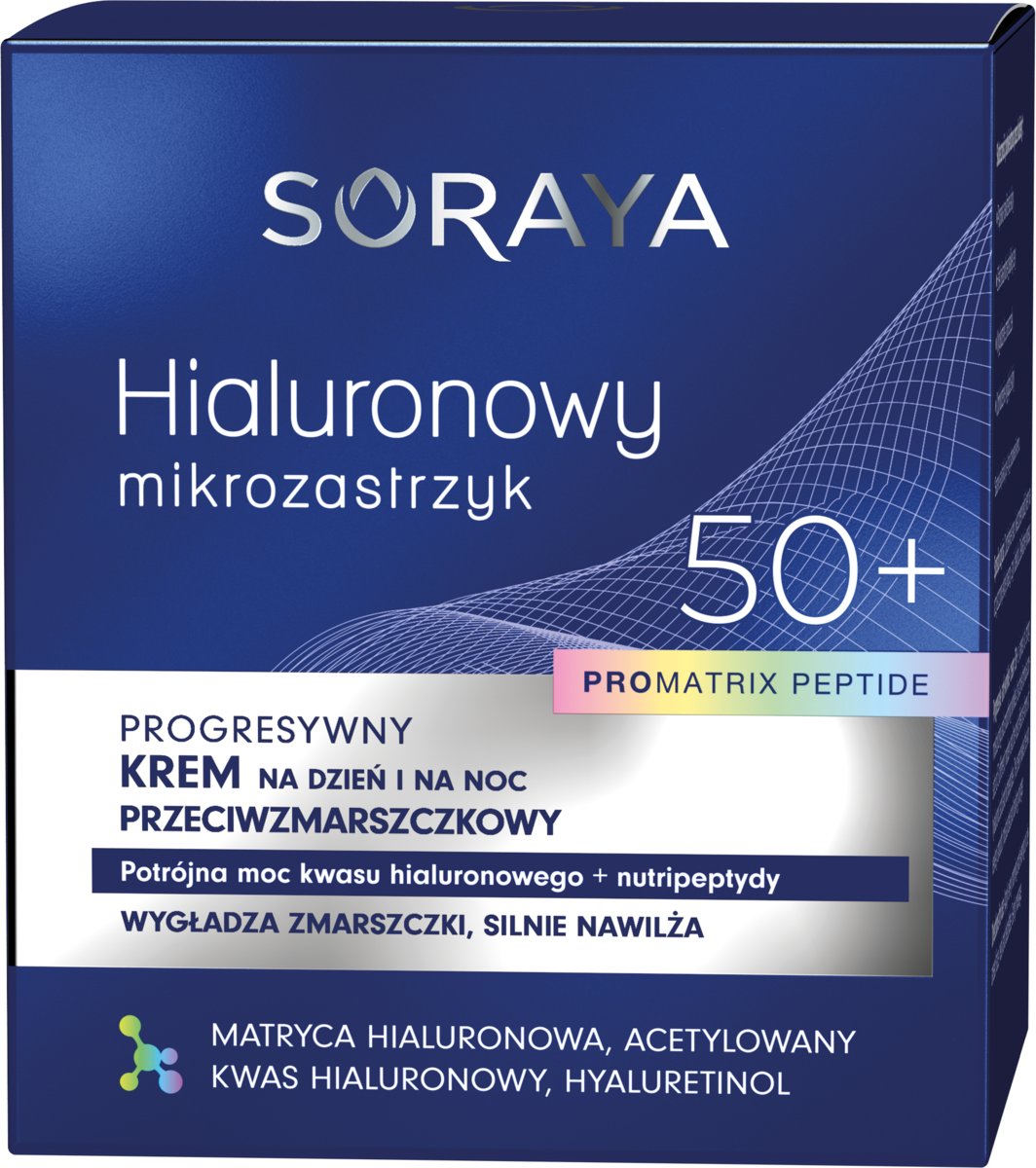 | Nazwa: | Soraya, Hialuronowy Mikrozastrzyk Pro Matrix, Krem Przeciwzmarszczkowy 50+, 50 ml |
