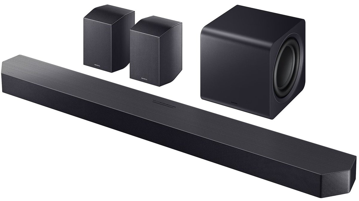 Zestaw zawiera bezprzewodowe tylne głośniki, które pozwalają na odtwarzanie dźwięków ulubionych filmów i programów telewizyjnych nawet na niskim poziomie głośności, tworząc przytulną i wciągającą atmosferę. Soundbar został zaprojektowany z myślą o maksymalnym zanurzeniu w dźwięku, wyposażony w strategicznie rozmieszczone głośniki: przednie, boczne i górne, uzupełnione przez oddzielny subwoofer i bezprzewodowe głośniki tylne.