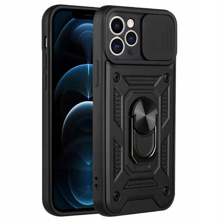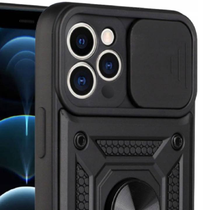 Etui Spacecase CamRing do iPhone 12 Pro Max czarny Pancerne etui CamRing to doskonała ochrona Twojego urządzenia. Wbudowany przesuwny slider skutecznie zabezpiecza powierzchnię aparatu przed ...