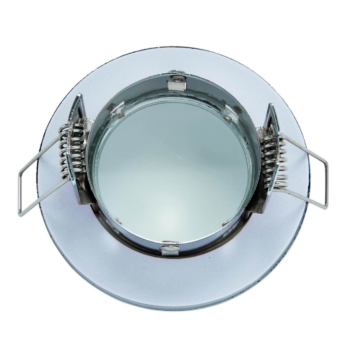 Speculo round IP65 50WBrushed chrome effect plate & clear glass1mm projection x 36mm height x 85mm diameter50W GU10 reflector (Required) IP65. Suitable for bathroom zone 2 Suitable for bathroom zone ...