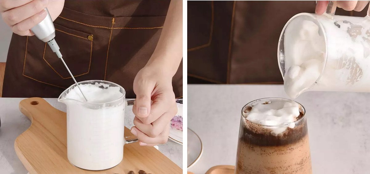 Zasilany jest 3 bateriami AAA, dzięki czemu nie musisz się martwić o przewody i podłączenie do gniazdka. Dzięki wysokim obrotom, w ciągu 15-20 sekund może wytworzyć kremową piankę mleczną do latte, cappuccino, macchiato lub gorącej czekolady.