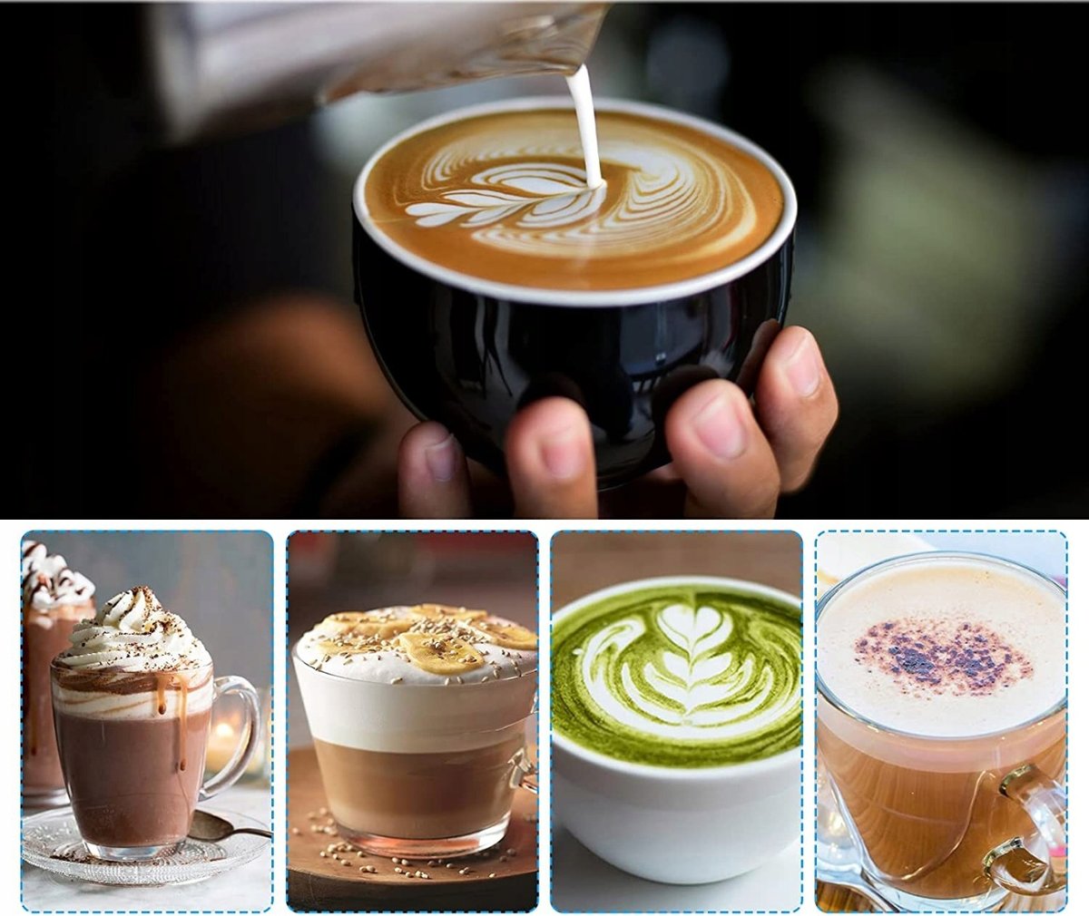 Wysoka prędkość (11000 obr./min.) Możesz stworzyć kremową piankę do kawy, latte, cappuccino, gorącej czekolady.