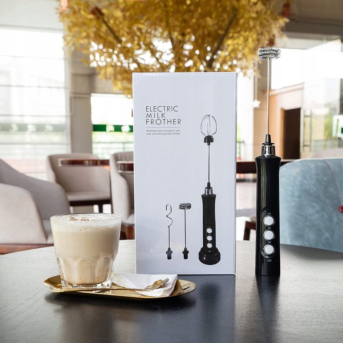 Akumulatorowy elektryczny spieniacz do mleka z trzystopniową regulacją prędkości