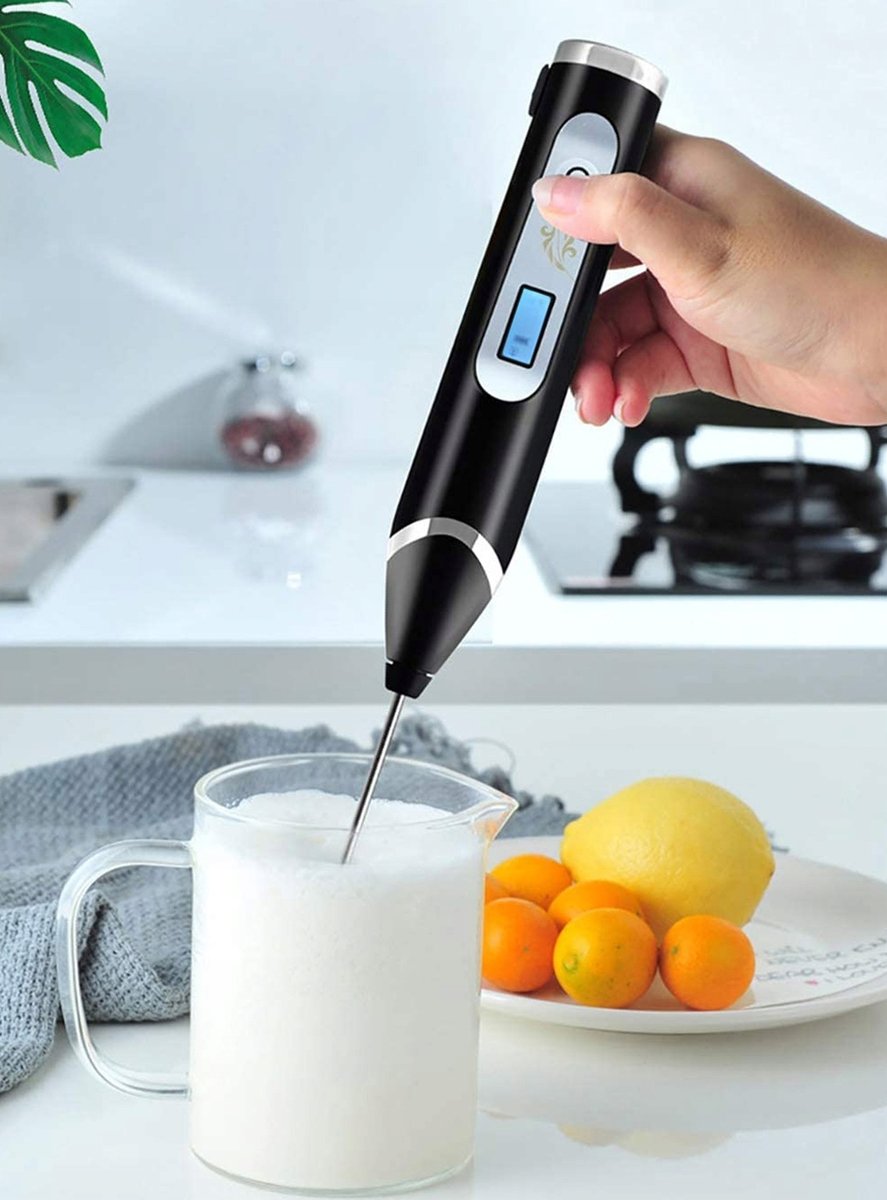 Akumulatorowy elektryczny spieniacz do mleka z trzystopniową regulacją prędkości oraz wyświetlaczem LCD