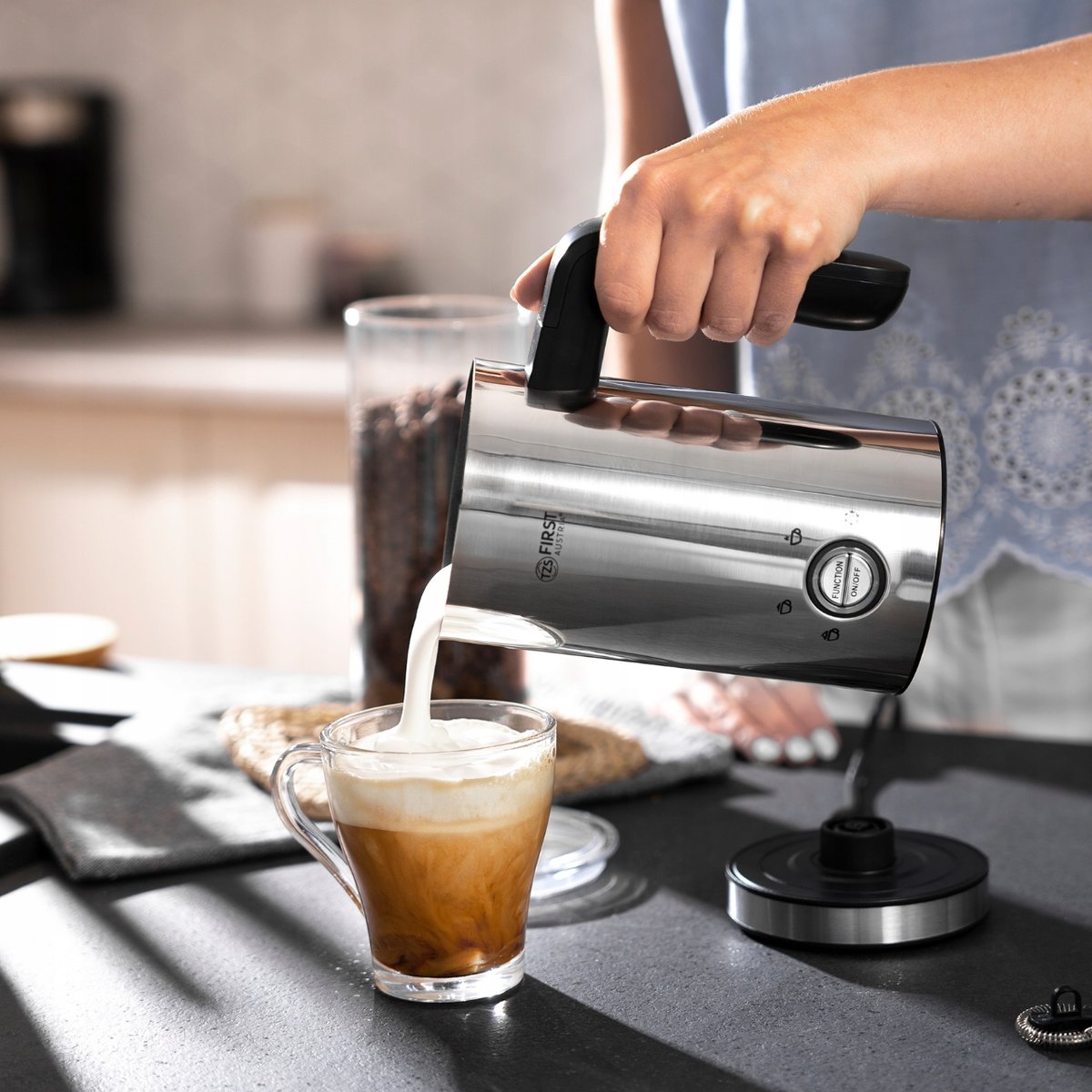 SPIENIACZ DO MLEKA FIRST AUSTRIA 5440-1 WIELOFUNKCYJNA, WYPOSAŻONA W 4 PROGRAMYCiesz się doskonałą latte, mrożoną kawą, latte macchiato lub cappuccino za naciśnięciem jednego ...