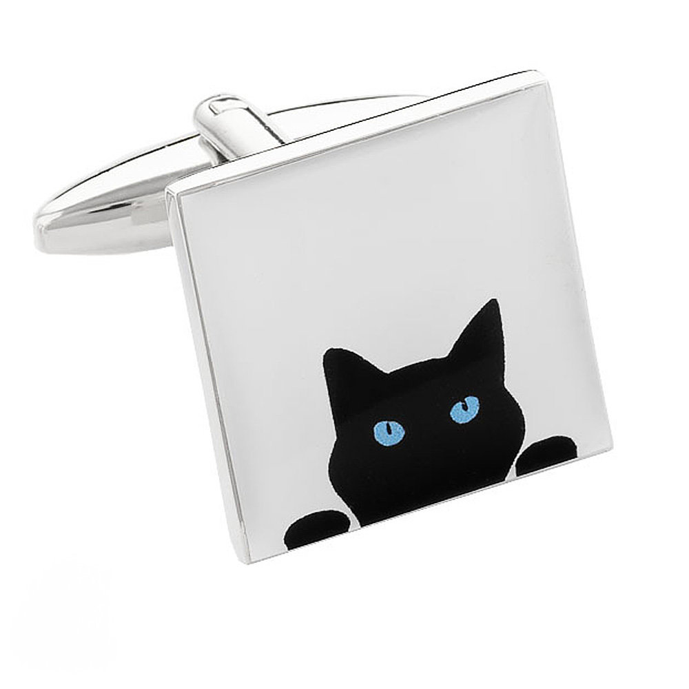 Miłośnicy kociaków – małych i dużych, rudych, czarnych i burasów, rasowych kanapowców i wdzięcznych dachowców – oto spinki do mankietów, które podbiją Wasze serca! Proste kwadratowe spinki z białym tłem i zdjęciem ciekawskiego kota wyglądającego zza ich krawędzi to model idealny dla każdego kociarza. Proste i urocze, będą świetnym dodatkiem do eleganckiego stroju. Może dzięki nim poznamy na imprezie innych kociarzy!