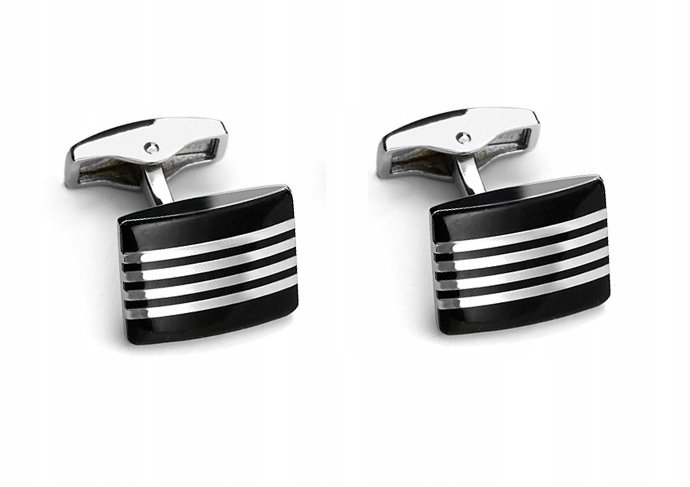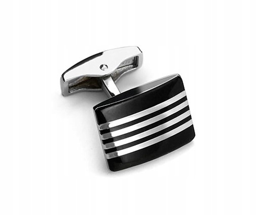 Wysokiej jakości stalowe spinki do mankietów zapakowane w pudełko.