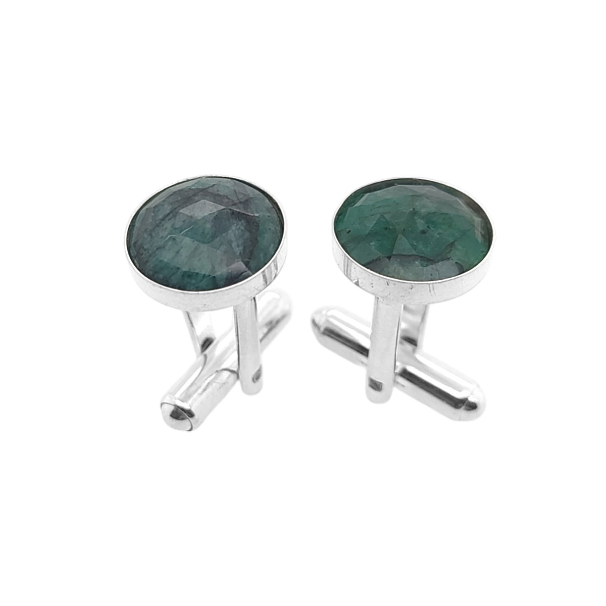 Szmaragd okrągły w oprawie (S1361) Srebro [925] - S1361 Srebrne spinki do mankietów Szmaragd okrągły w oprawieWyjątkowe spinki do koszuli wykonane są z najlepszych materiałów - kamieni naturalnych ...