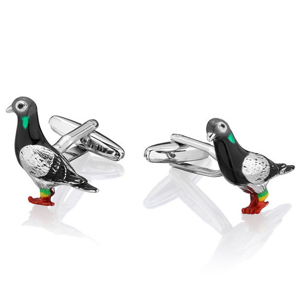 Prezentowane spinki będą nie lada gratką dla wszystkich gołębiarzy. Pasja do przyglądania się życiu tych ptaków zajmuje ogromną część życia wielu z nas i to, między innymi, tym osobom na pewno spodobają się niezwykle oryginalne spinki przedstawiające gołębie. Spinki są wykonane ze stali szlachetnej, a więc są modelami trwałymi, o wysokiej jakości. Są one połączeniem koloru czarnego ze srebrnym oraz akcentami wyraźniejszych barw. Gołębie spinki zaskakują detalami takimi jak wspaniale odzwierciedlone spojrzenie tych ptaków. Dzięki stonowanej kolorystyce spinki zaprezentują się gustownie zarówno na koszuli białej, jak i casualowej.