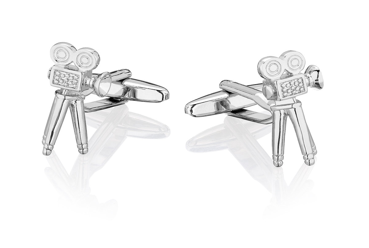 Oryginalne spinki do mankietów w kształcie kamery retro to propozycja dla wszystkich kinomaniaków i filmowców. Ten komplet spinek to niezwykle pięknie prezentująca się biżuteria dla pasjonatów kina.