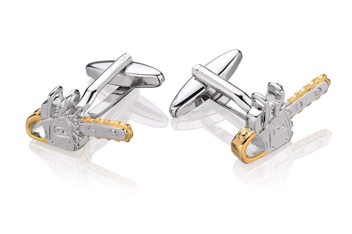 Piła łańcuchowa to bardzo przydatne narzędzie, bez którego szanujący się drwal czy ogrodnik właściwie nie może się obejść. Pomaga ona bowiem w pielęgnacji drzew i utrzymaniu porządku w ogrodzie. Prezentowane tutaj piły nie nadadzą się do tych celów, ale zamiast tego wspaniale ozdobią mankiety mężczyzny, który zawodowo lub hobbystycznie zajmuje się pielęgnacją zieleni. Spinki do mankietów – piły mechaniczne wykonane zostały z lśniącej stali szlachetnej, która w przeciwieństwie do srebra nie czernieje i na długo zachowuje połysk.