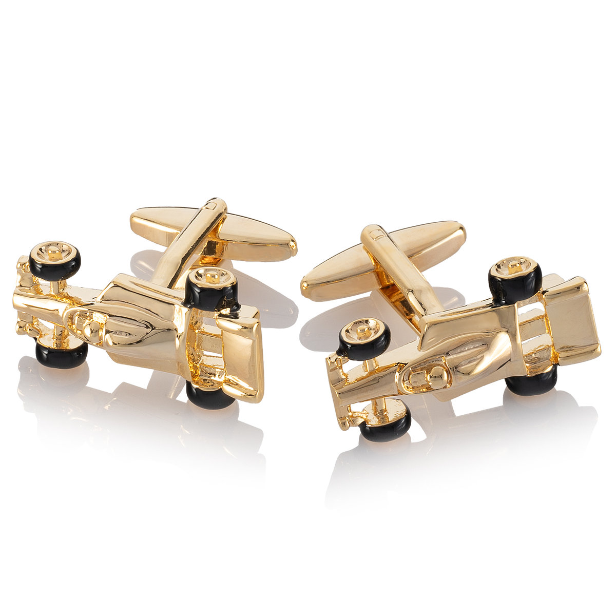 Spinki do mankietów Złota Formuła F1 X2 AJA1042 Spinki do mankietów wykonane w kształcie miniaturowych bolidów Formuły 1 to wspaniały dodatek do stroju prawdziwego mężczyzny – takiego, który uwielbia