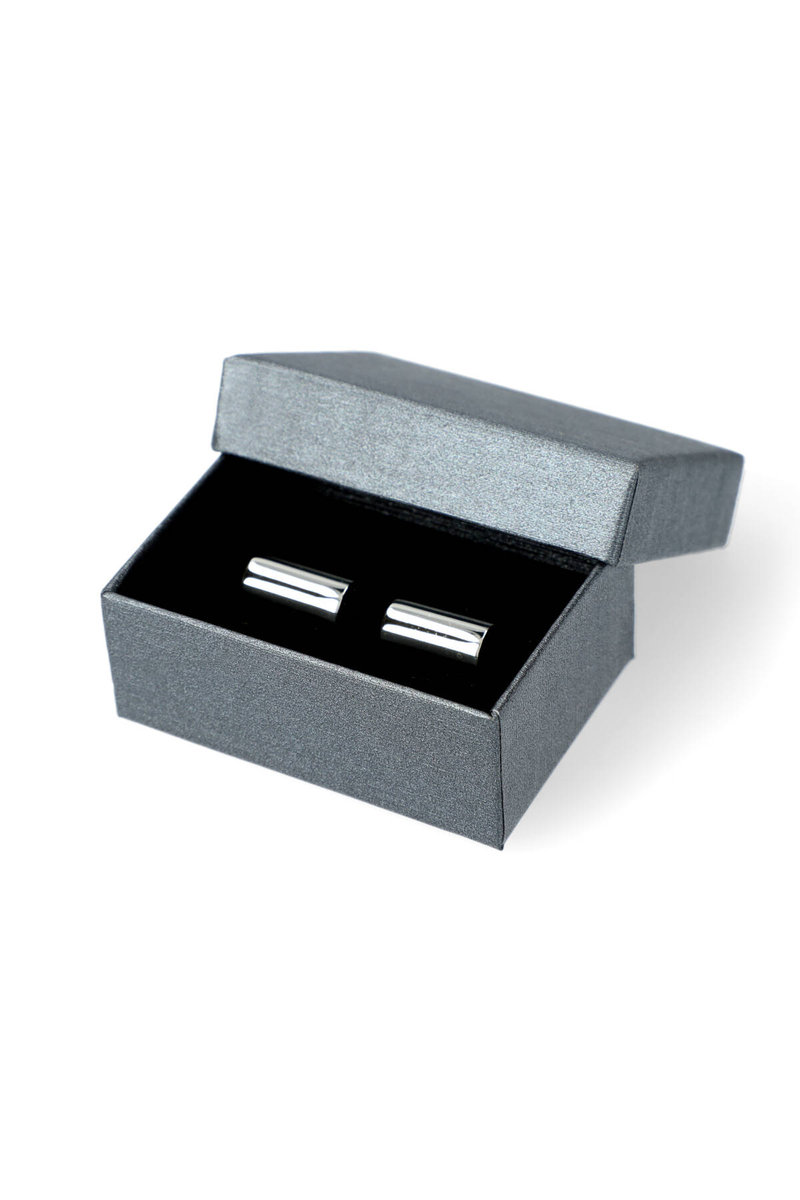 Spinki w kształcie prostokąta wykończonego z przodu na okrągło. Wykonane z mosiądzu w srebrnym odcieniu w połysku. Spinki będą dobrym wyborem do koszuli LANCERTO z podwójnym mankietem francuskim. Sprawdzą się w różnych stylizacjach np. podczas ceremonii ślubnej, ważnej uroczystości rodzinnej lub spotkania biznesowego. Spinki są zapakowane w gustowne pudełeczko, które ułatwia ich przechowywanie.