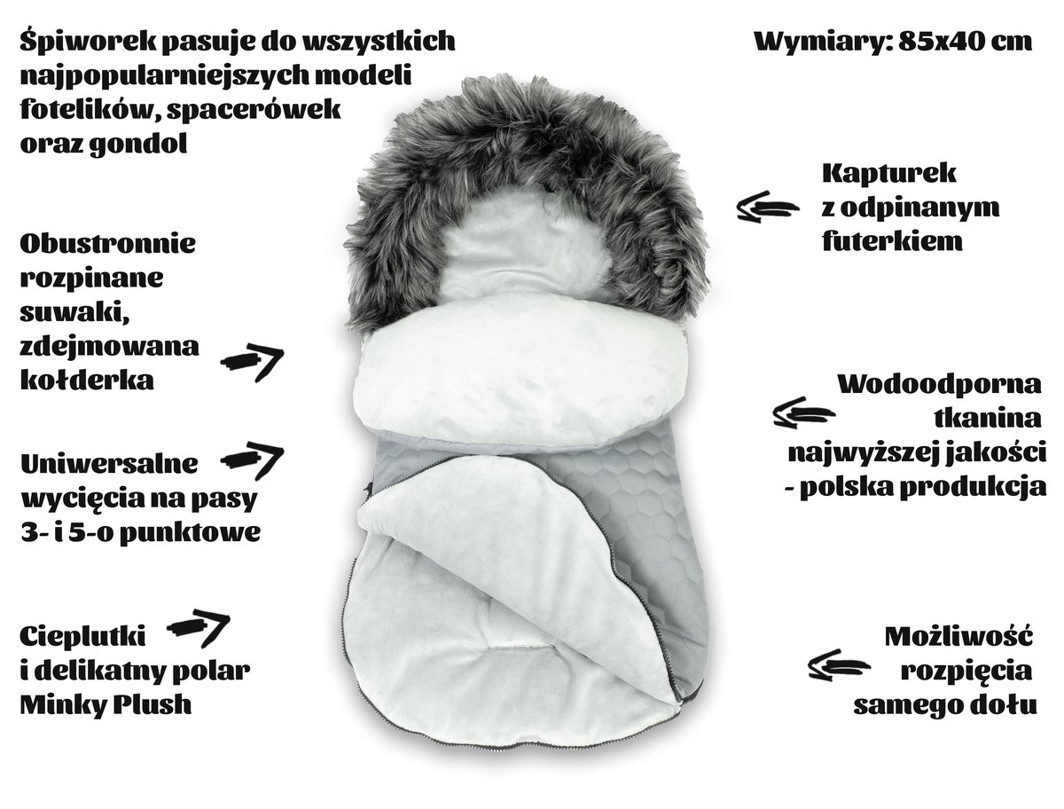 Właśnie zrecenzowałem BlueKitty, Śpiworek 3w1 do wózka spacerówki gondoli fotelika 0-13 kg - PIKOWANY - 85x40, szary