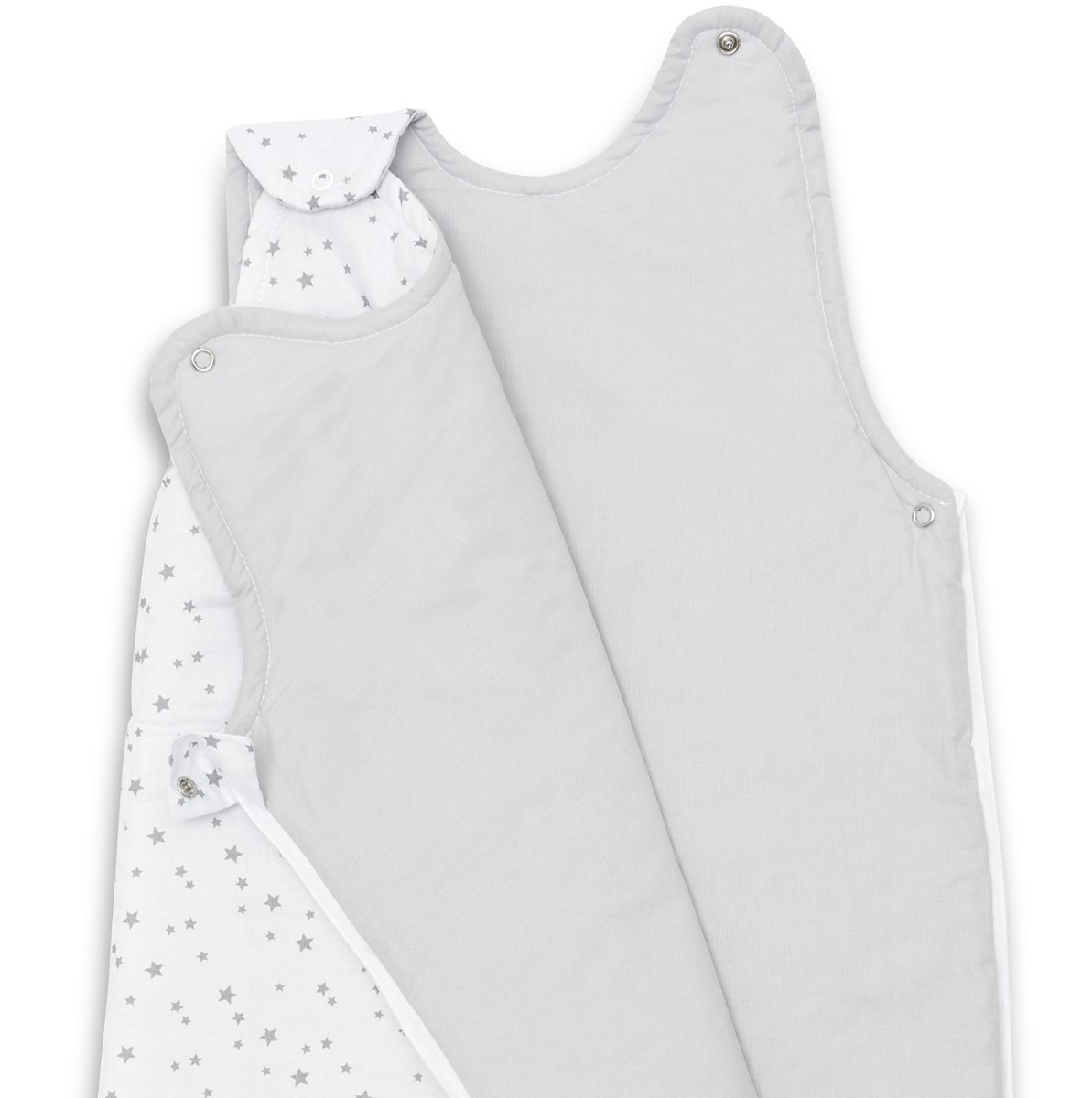 Piękny, całoroczny śpiworek do spania Polaris White, idealny od pierwszych dni od narodzin maluszka. To niezbędny element dziecięcej wyprawki. Jest niezastąpiony w łóżeczku, kołysce, kojcu i gondoli. Uszyty ręcznie z certyfikowanej bawełny, przyjaznej skórze dziecka. Z jednej strony jest w delikatne szare gwiazdki na białym tle, z drugiej kolor jasno szary. To wzór, który z pewnością skradnie serca fankom klasycznego i minimalistycznego stylu.