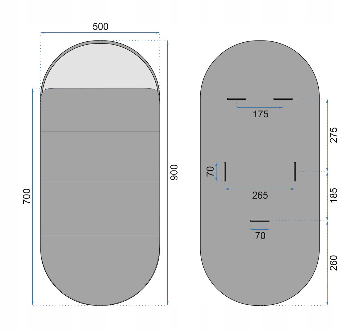 Poniżej prezentujemy rozkład otworów montażowych, który zapewnia wszechstronność użytkowania naszego śpiworka.