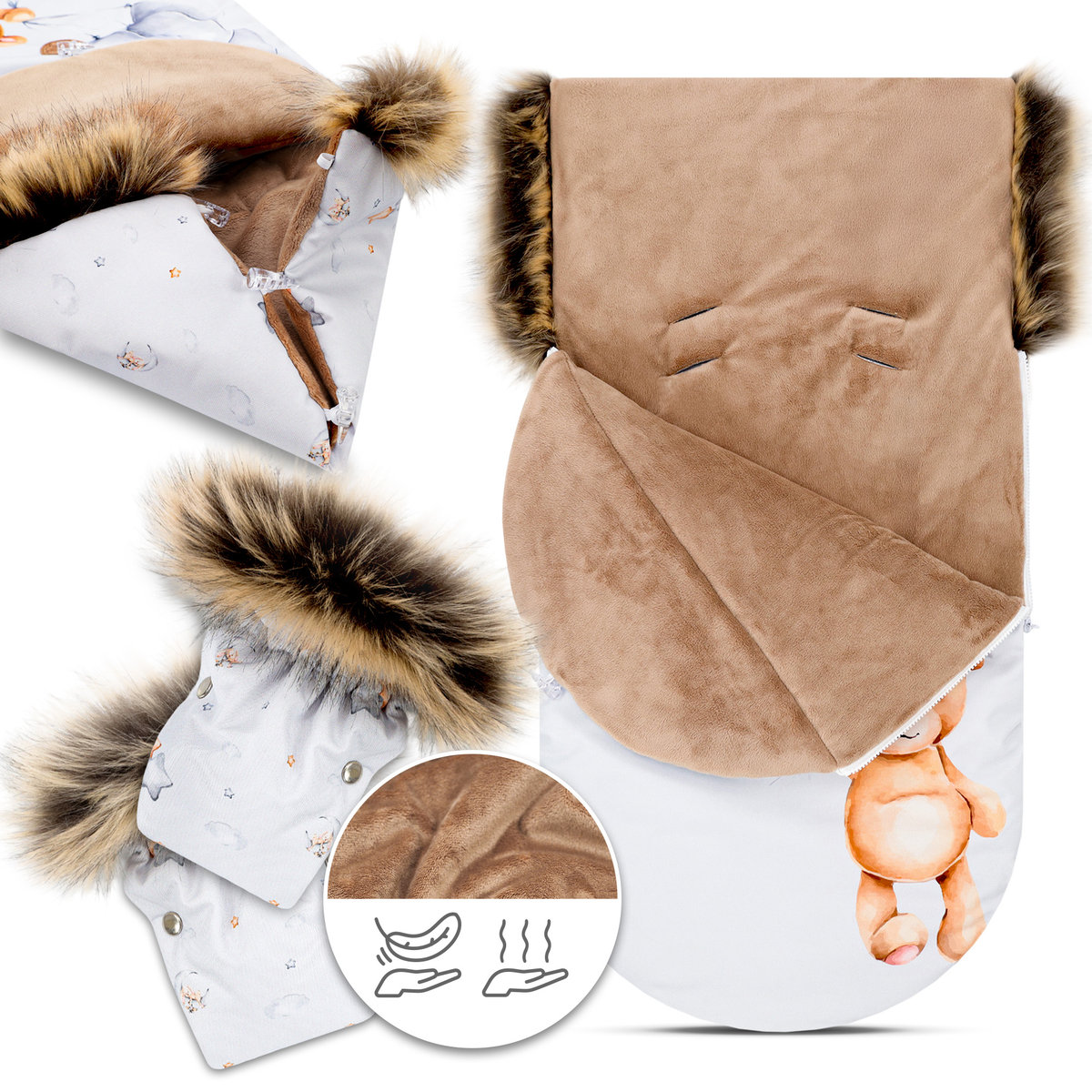 Właśnie zrecenzowałem Śpiworek do wózka dziecięcego i spacerówki na zimę Zestaw 90x45 cm - ciepły śpiwór zimowy, wkładka ocieplana, rożek niemowlęcy, akcesoria dla dziecka z dodatkową mufką na ręce