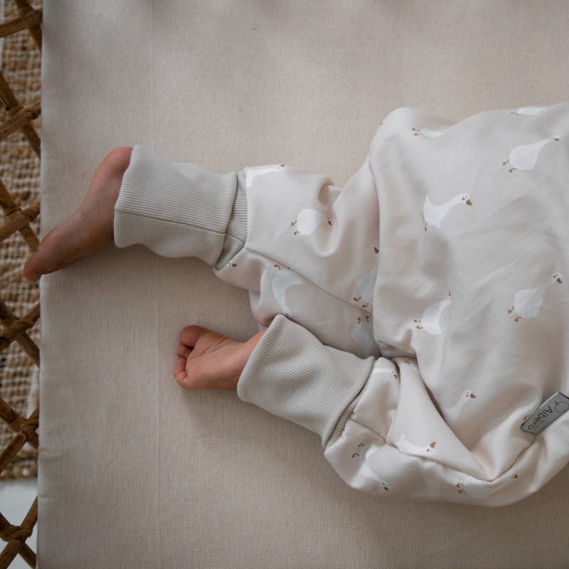 Bawełniany śpiworek niemowlęcy z nogawkami marki Albero Mio.