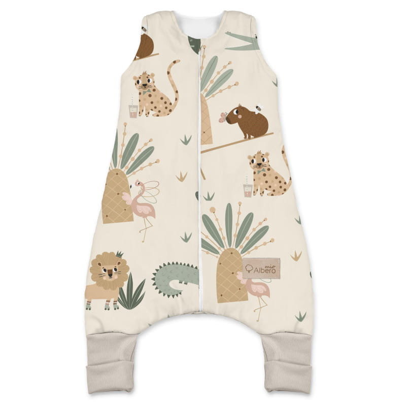 Bawełniany śpiworek niemowlęcy z nogawkami marki Albero Mio. Wzór: Zabawa w Tropikach Rozmiar: S - 12 - 36 miesięcy - długość całkowita 90 cm, szerokość pod pachami 36 cm. Śpiworek z nogawkami to ...