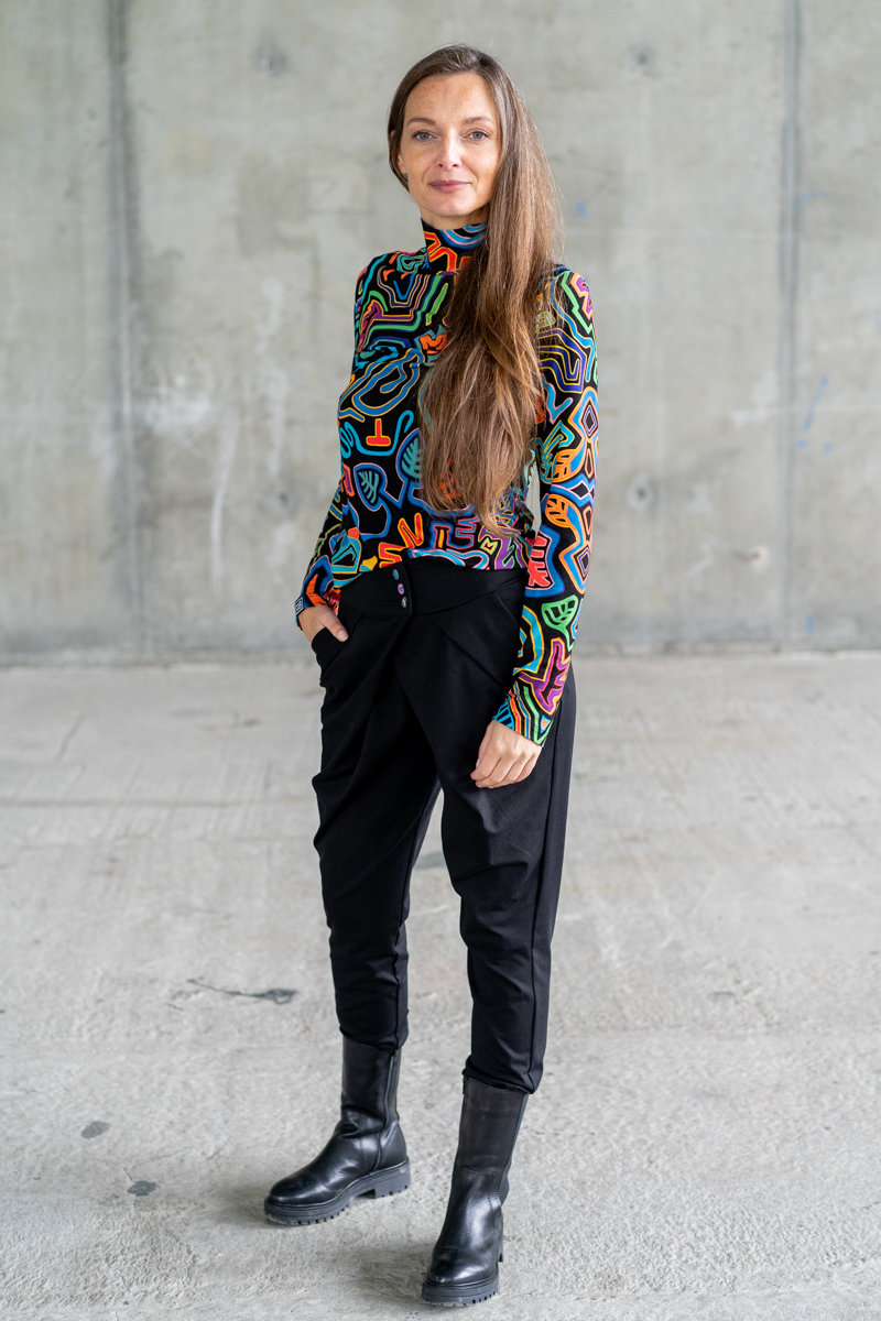 Zakładki z przodu nie tylko modelują sylwetkę, ale także wysmuklają talię, co sprawia, że będą doskonałym wyborem na wiele okazji. W tej wersji zrezygnowaliśmy z patki z tyłu, zyskacie dzięki temu bardziej minimalistyczny design, który pozwoli Wam nosić te spodnie na wiele różnych sposobów.