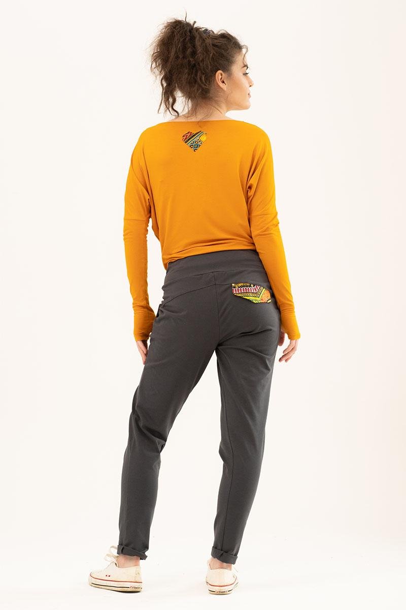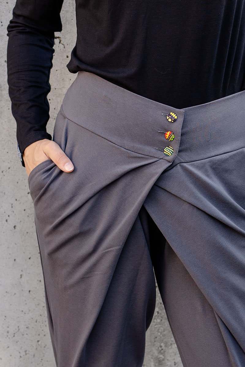 Spodnie Button są jednym z naszych największych bestsellerów i dodatkowo są też zaprojektowane w duchu odpowiedzialnej mody. Pokochasz je za bawełnę organiczną, afrykańskie akcenty i oryginalny krój.