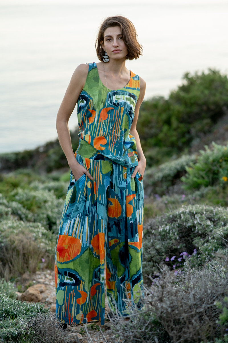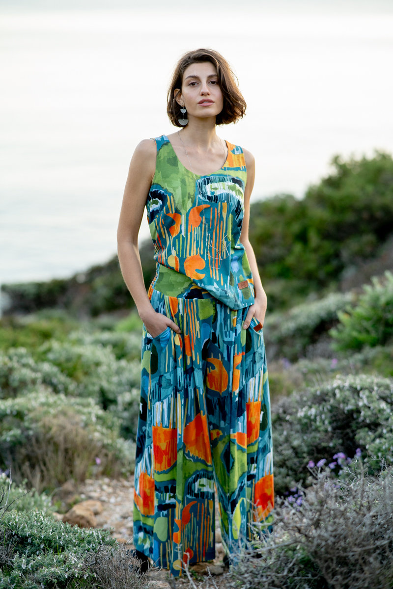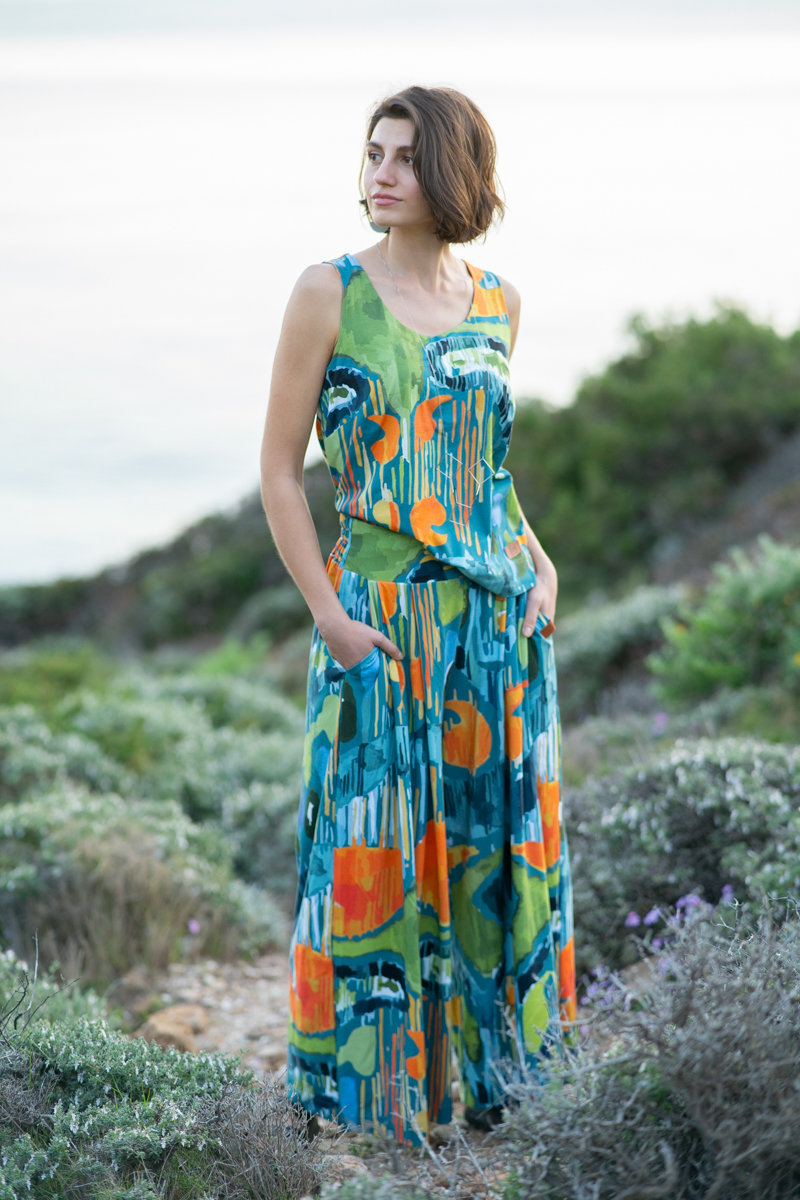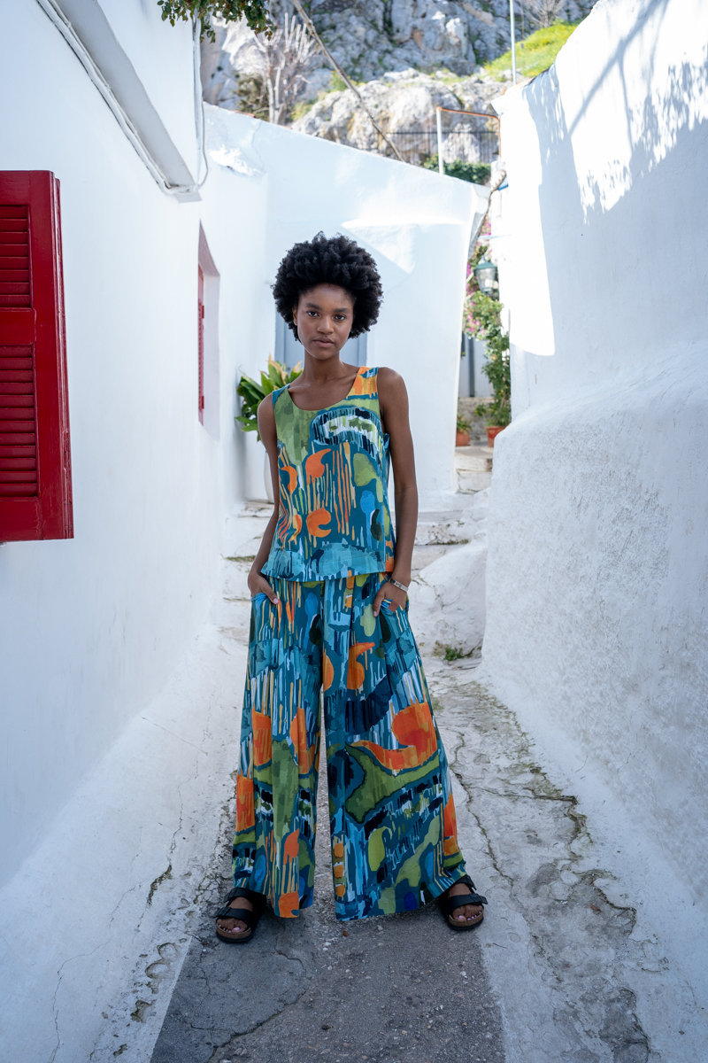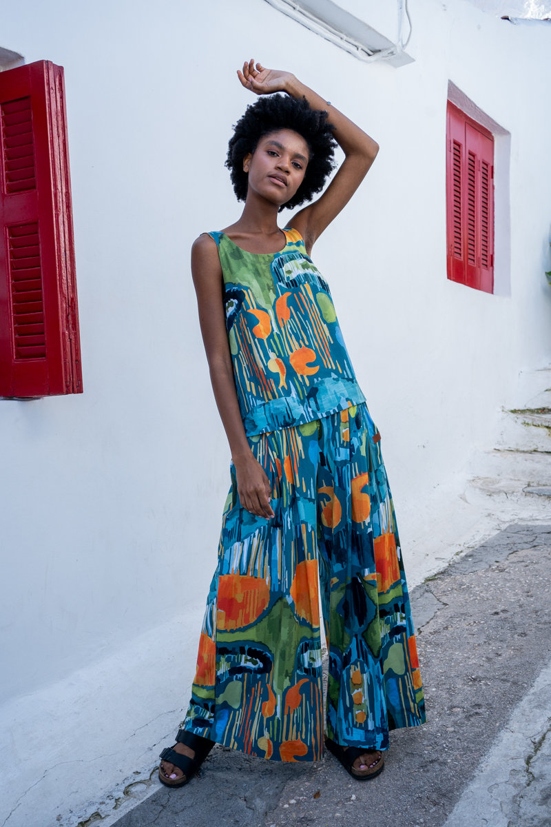 Szerokie damskie spodnie Roma to doskonała baza wielu stylizacji. Dobierz do nich top Katania aby stworzyć monochromatyczny zestaw w wersji gładkiej (dla tych, którzy kochają solidowe zestawy) lub stwórz zestaw full print.