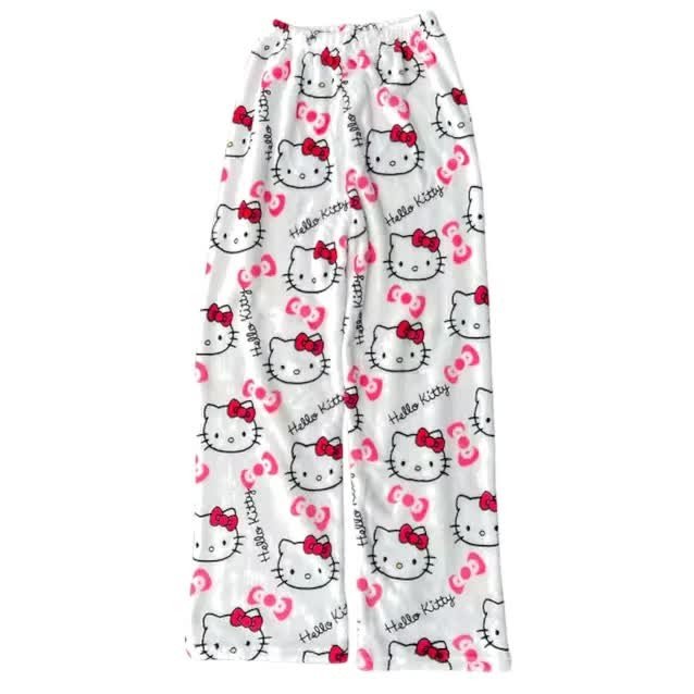 Spodnie Piżama Hello Kitty Pluszowe białe