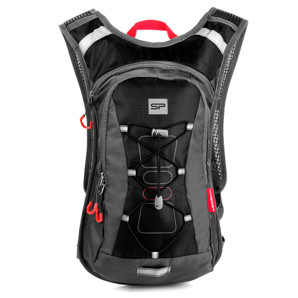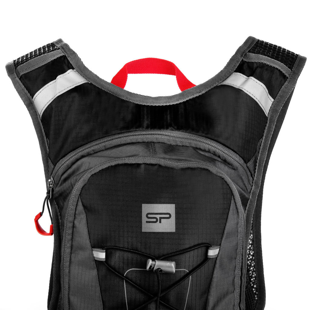 - Kształt plecaka pozwala zachować aerodynamiczną sylwetkę, co jest niezwykle ważne podczas jazdy na rowerze. Pas piersiowy i biodrowy pozwalają dostosować plecak do wzrostu i postury użytkownika. Pojemność plecaka jest w zupełności wystarczająca, by spakować wszelkie niezbędne akcesoria. Mała kieszonka na froncie ułatwia dostęp do najbardziej potrzebnych przedmiotów, do dyspozycji pozostaje również kieszeń główna. W plecaku przewidziano także miejsce na bukłak z wodą. Plecak przygotowany do użycia bukłaka z wodą. Zawiera specjalną kieszeń, wieszak, otwory i mocowania na paskach naramiennych. Produkt wyposażony w elementy poprawiające widoczność po zmroku. Jest to szczególnie ważne podczas jazdy w miejscach słabo oświetlonych i po poboczach dróg.