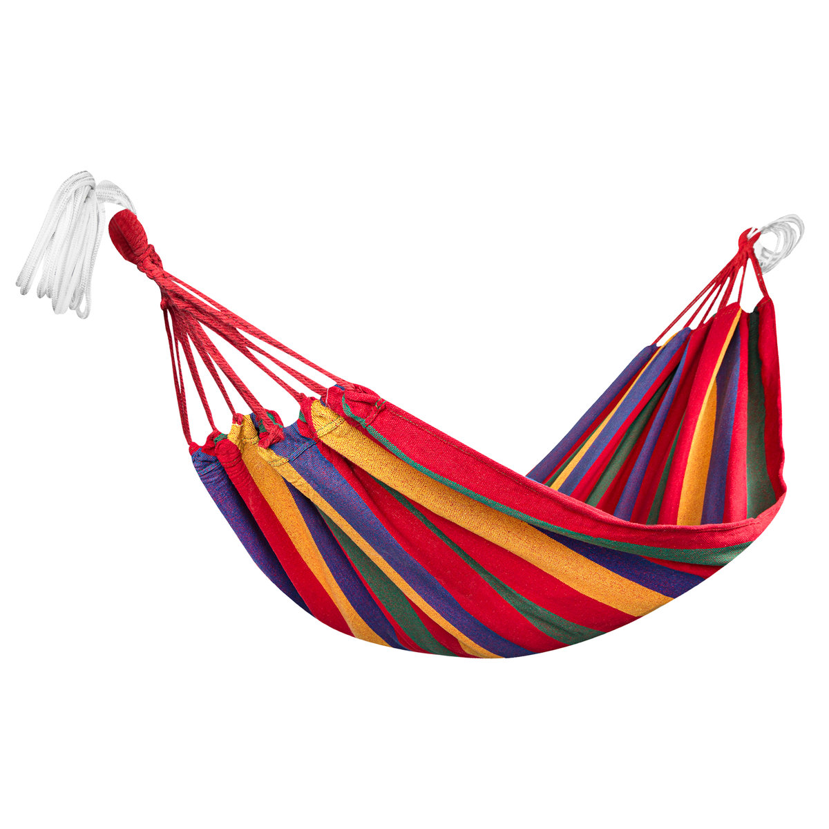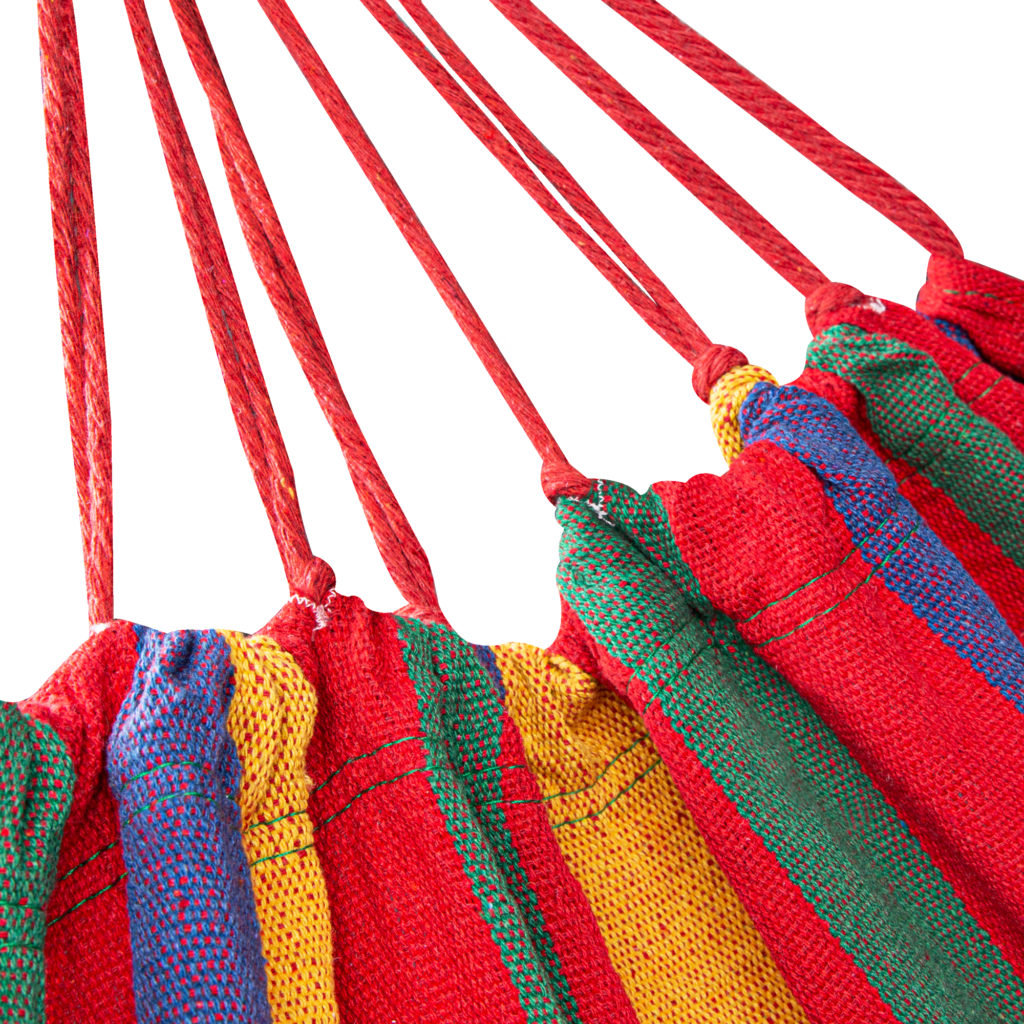 Hamak ogrodowy Spokey STRIPES został wykonany z naturalnego materiału – ekologiczna bawełna jest niezwykle miękka w dotyku i zapewnia znakomitą przepuszczalność powietrza. Gruby materiał i odpowiednio mocne napięcie sznurków to pewność wyjątkowego komfortu i optymalnego podparcia ciała. Dzięki temu wytrzymuje maksymalne obciążenie wynoszące aż 120 kg. Ale to niejedyne zalety hamaka jednoosobowego Spokey STRIPES! Doskonale dopasowuje się do ciała jednocześnie jest bardzo stabilny.