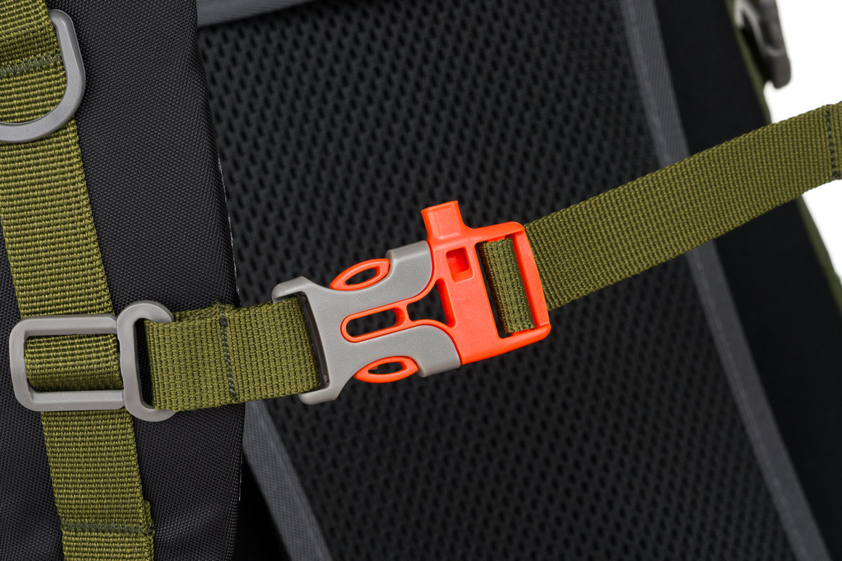 Plecak wyposażono w regulowane pasy: biodrowy i piersiowy, które gwarantują idealne dopasowanie do sylwetki, odciążając plecy nawet podczas długich wędrówek.