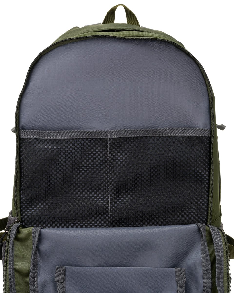 Plecak posiada dwie przestronne komory, które pomieszczą większe elementy wyposażenia, takie jak odzież, jedzenie czy sprzęt biwakowy. Liczne kieszenie i przegródki (zewnętrzne i wewnętrzne) umożliwiają szybki dostęp do drobniejszych przedmiotów, takich jak mapa, latarka, klucze czy dokumenty.