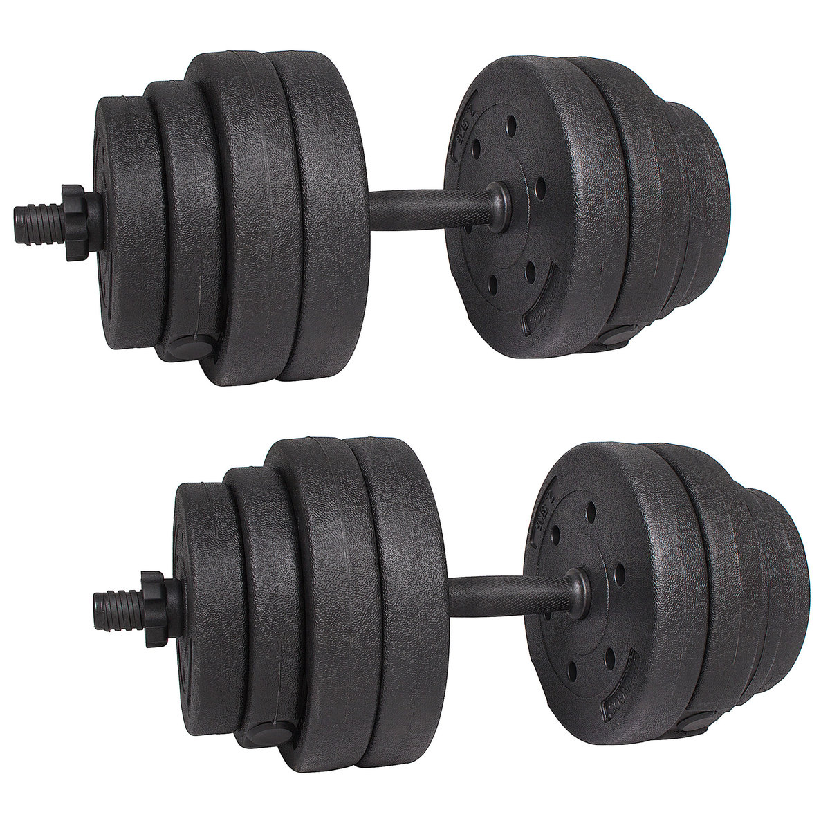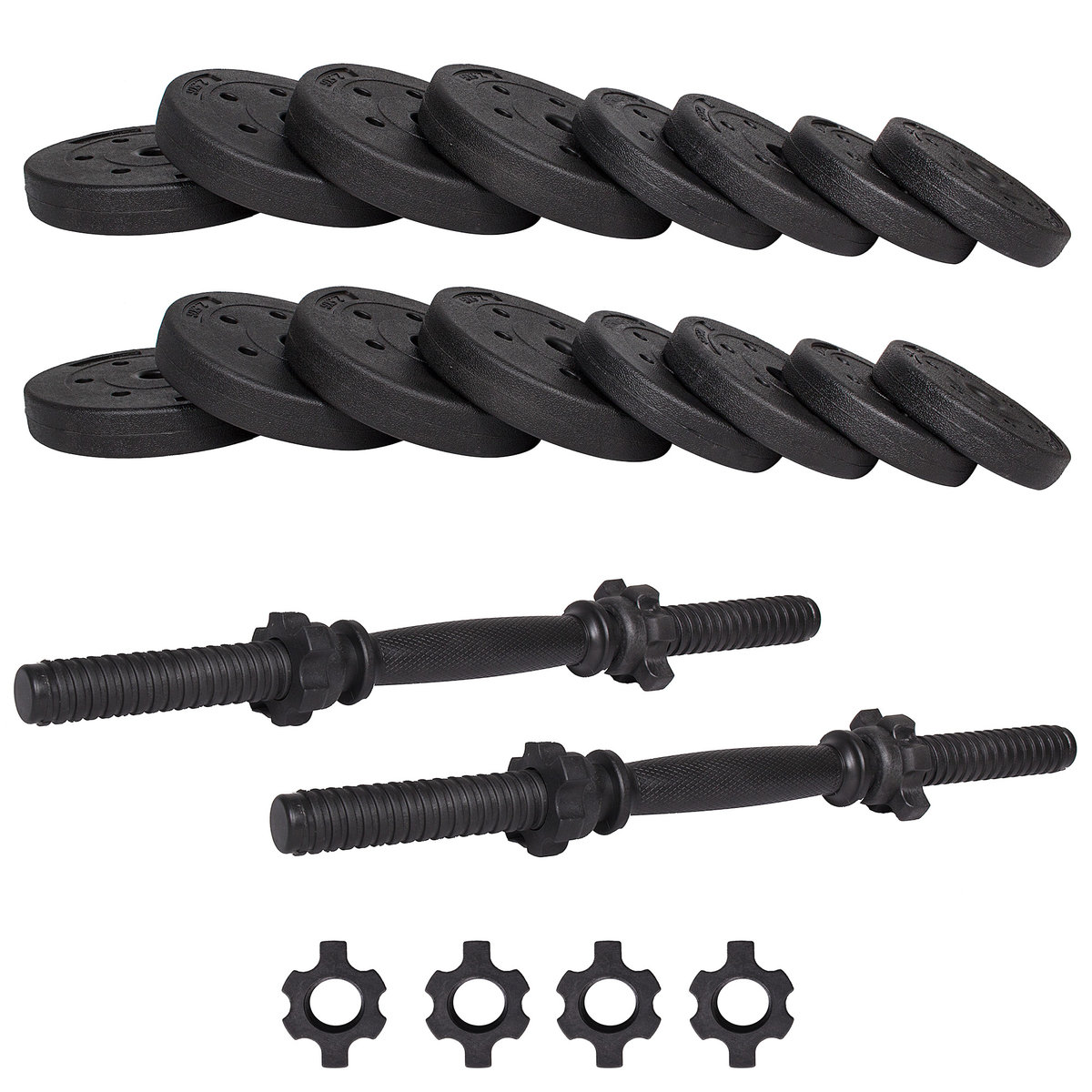 Hantle bitumiczne od firmy Springos składające się z dwóch gryfów o długości 45 cm a także ciężarów o łącznej wadze 30 kg są doskonałym narzędziem do treningu we własnej siłowni. Odkładanie i upuszczanie obciążeń będzie o wiele łatwiejsze, dzięki bitumicznemu wypełnieniu. W zależności od wykonywanego ćwiczenia lub stopnia zaawansowania osoby ćwiczącej, jest możliwe wprowadzenie różnych konfiguracji wagowych. Hantle obejmują w sumie 16 obciążeń: 4 o wadze 1 kg, 4 o wadze 1,25 kg i 8 o wadze 2,5 kg. Bezpieczeństwo zagwarantowane jest dzięki antypoślizgowemu uchwytowi, który zapewni właściwe trzymanie. Bitumiczne wypełnienie ochroni podłoże przed uszkodzeniem w trakcie upuszczania ciężarów a także tłumi dźwięki. Natomiast wykonanie z idealnych jakościowo surowców spowoduje, że będą służyć przez długi czas.