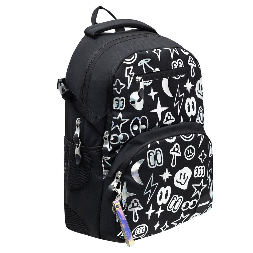 Styl i detale – kolorystyka i wzórPlecak zachwyca praktyczną i modną kolorystyką. Młodzieżowe, białe grafiki na czarnym tle to stylowe ciekawe połączenie. Plecak idealny do szkoły dla chłopca i dziewczynki. | |