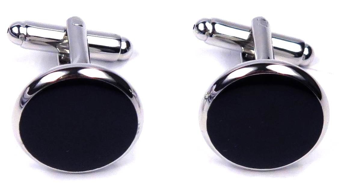 Eleganckie srebrne spinki smokingowe do mankietów z czarnym oczkiem. Szczególnie polecane do koszuli smokingowej. Zapakowane w pudełczko, przez co doskonale nadają się na prezent.