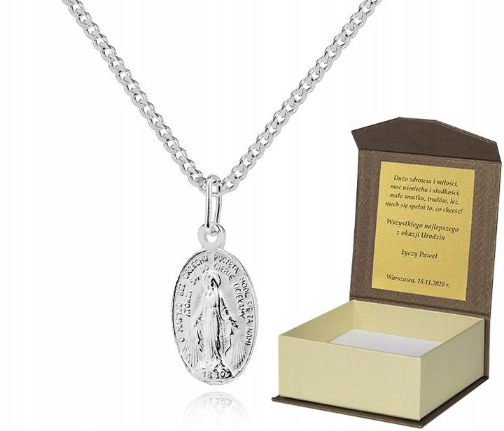 | Nazwa: | Srebrny łańcuszek medalik chrzest Komunia 50cmLM33 |